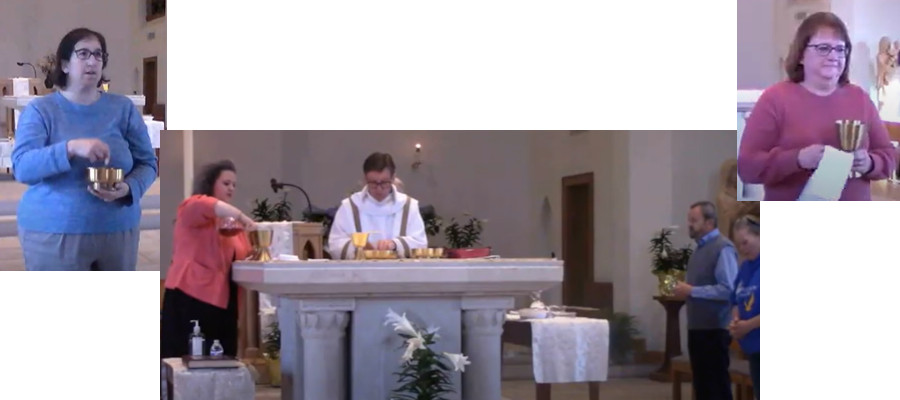 These lay ministers participate in an afternoon or evening of preparation for this ministry through the Diocese of Cleveland. Our parish community then commissions them for service here. As new Extraordinary Ministers of Holy Communion are commissioned, we provide additional onsite training.