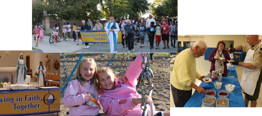 Each year, on September 12th, Our Lady of the Lake Parish commemorates our parish feast day, The Most Holy Name of Mary. Festivities begin at 5:30pm at Arcadia Beach Club with a hot dog cookout. After, everyone gathers on the beach where Fr. Joe and members of the music ministry begin leading us in prayer. We pray, sing, wave streamers and process carrying Mary from Arcadia, up East 201st Street, around the corner onto Lake Shore Blvd. and into our church placing Mary in front of the altar. When our prayer service concludes, everyone is invited down to our parish hall for more fellowship and an ice cream social.